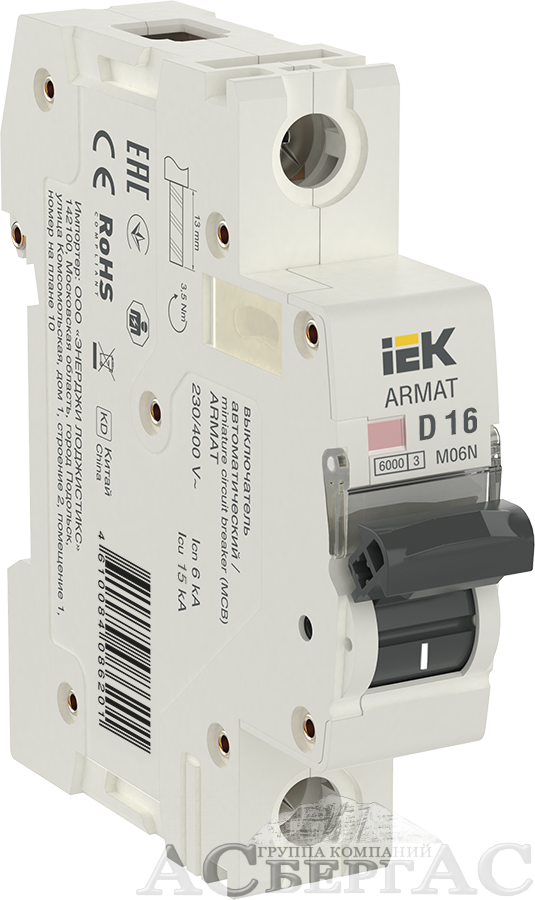 M06N Автоматический выключатель 1-полюсный, 16А, 6kA (хар-ка D) ИЭК