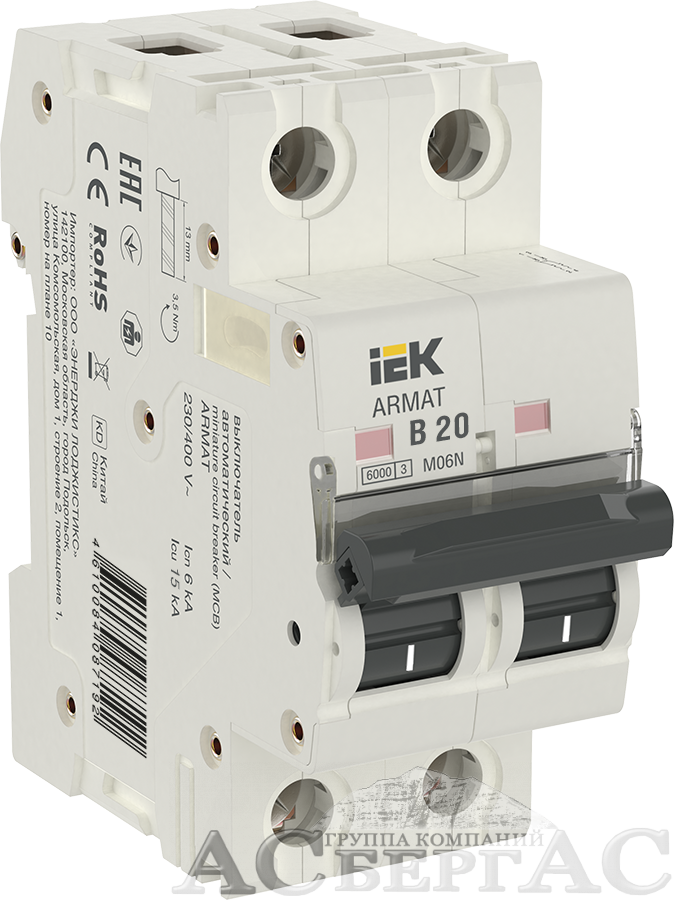 M06N Автоматический выключатель 2-полюсный, 20А, 6kA (хар-ка B) ИЭК