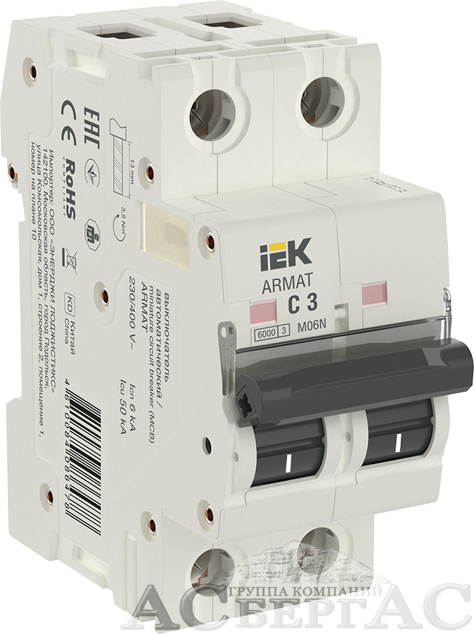 M06N Автоматический выключатель 2-полюсный, 3А, 6kA (хар-ка C) ИЭК