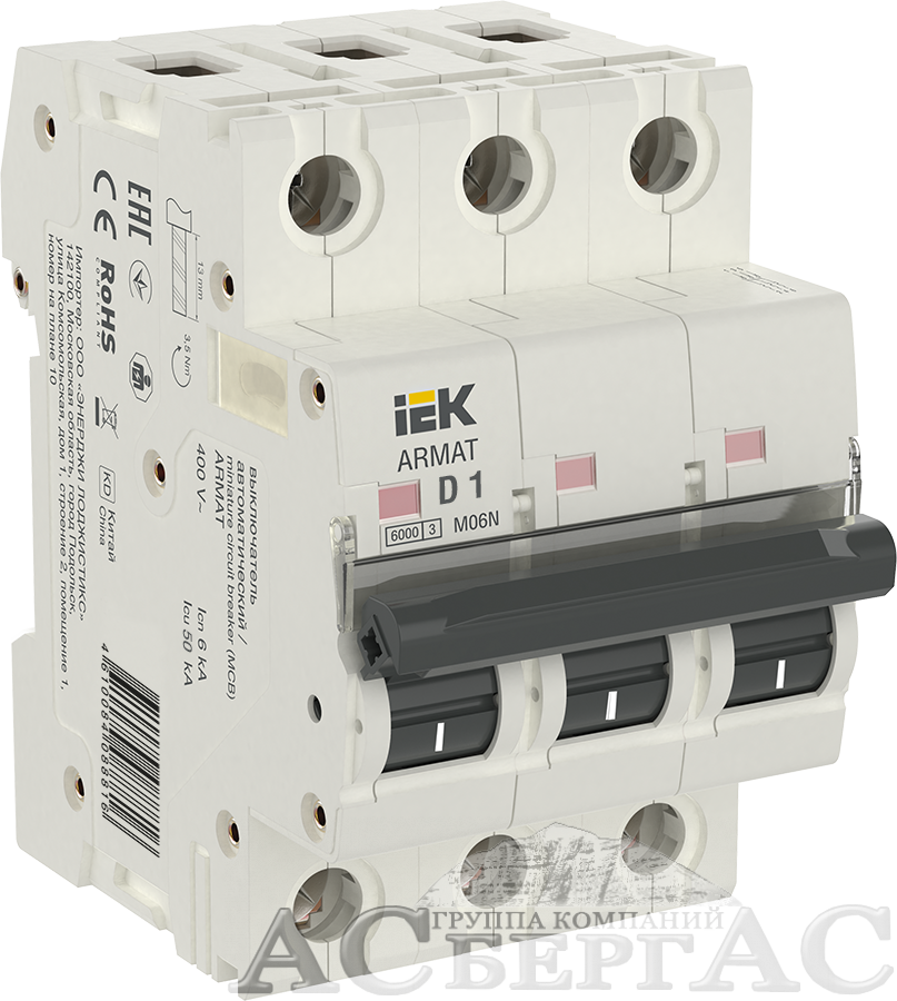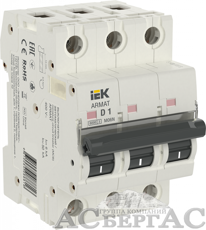 M06N Автоматический выключатель 3-полюсный, 1А, 6kA (хар-ка D) ИЭК
