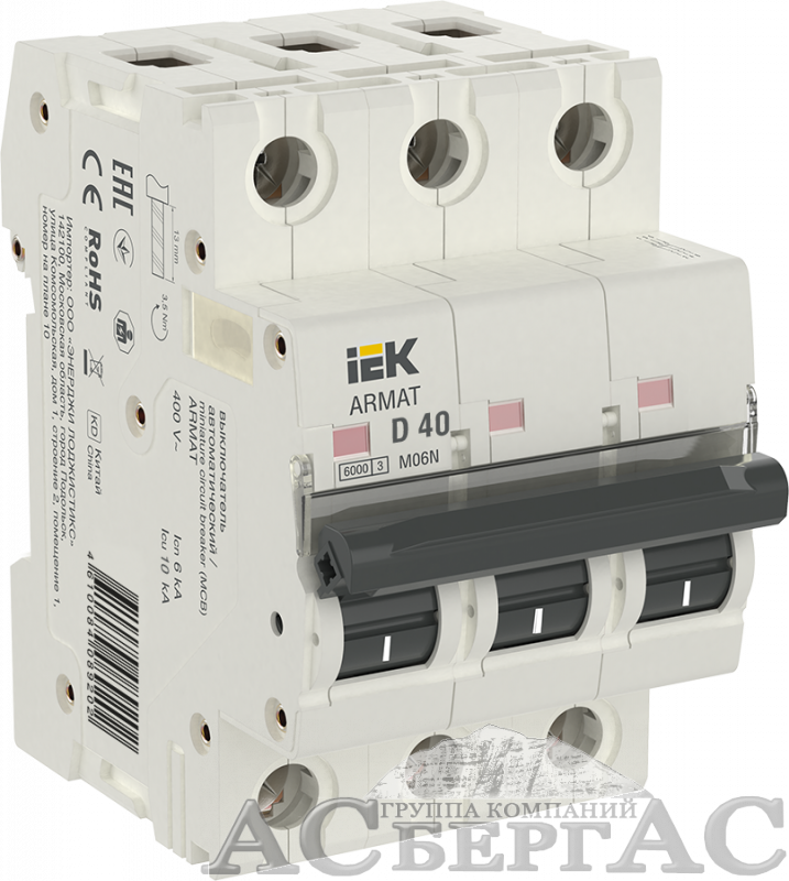 M06N Автоматический выключатель 3-полюсный, 40А, 6kA (хар-ка D) ИЭК