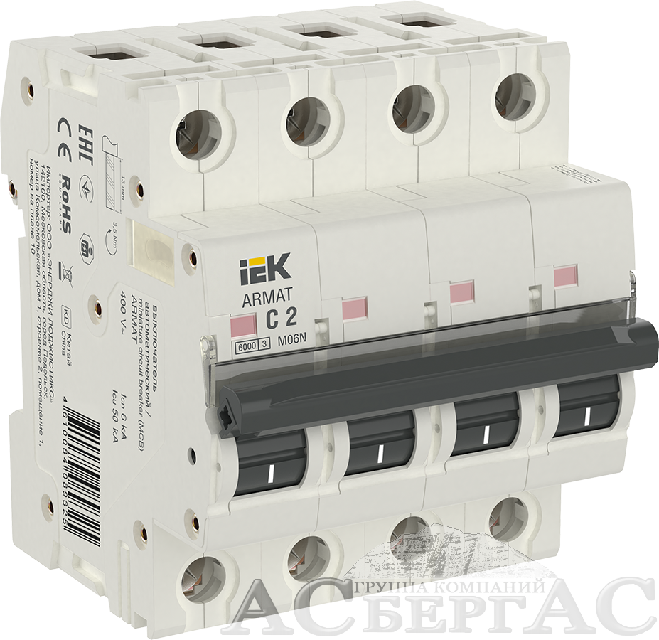 M06N Автоматический выключатель 4-полюсный, 2А, 6kA (хар-ка C) ИЭК