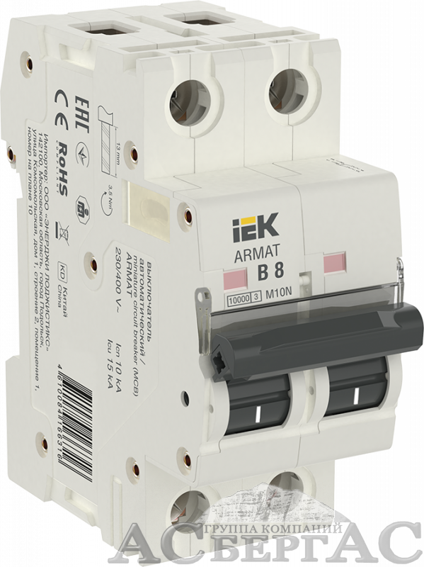 M10N Автоматический выключатель 2-полюсный, 8А, 10kA (хар-ка B) ИЭК