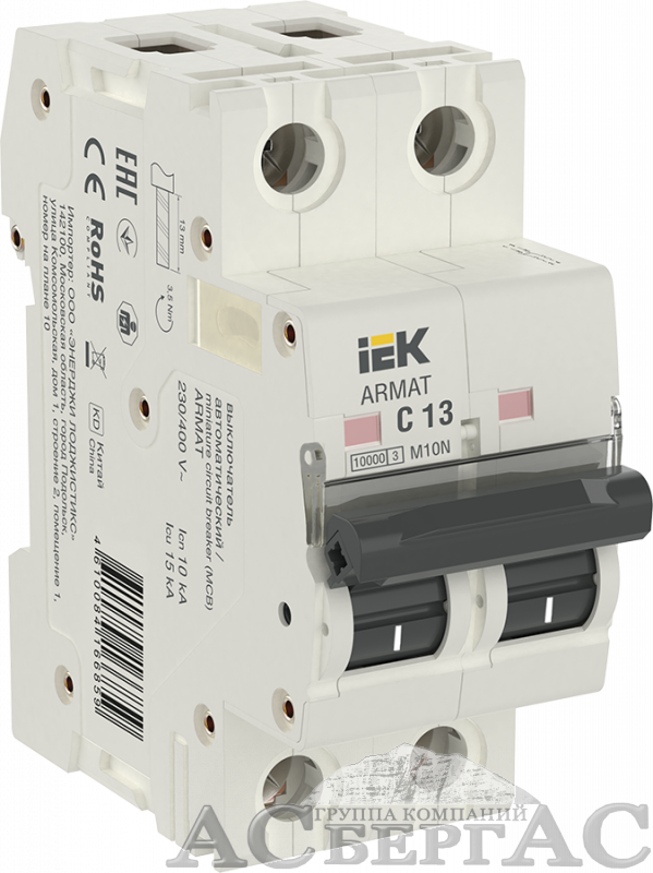 M10N Автоматический выключатель 2-полюсный, 13А, 10kA (хар-ка C) ИЭК