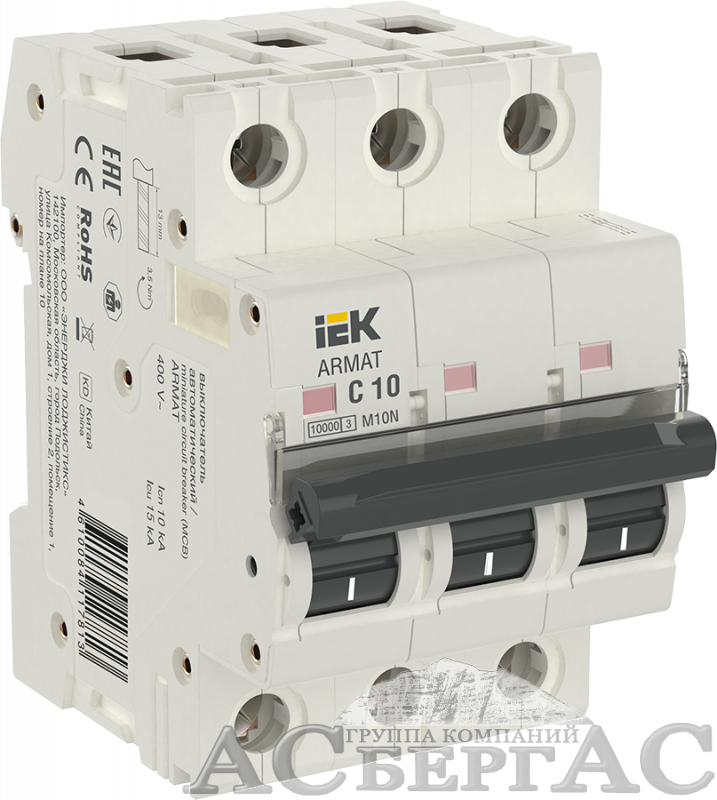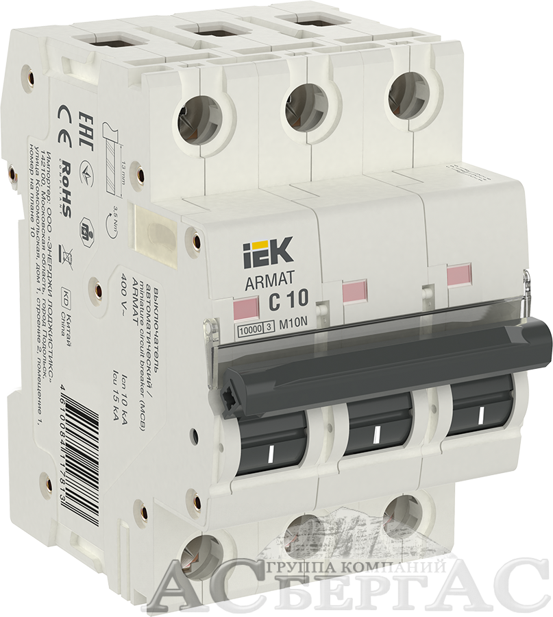 M10N Автоматический выключатель 3-полюсный, 10А, 10kA (хар-ка C) ИЭК