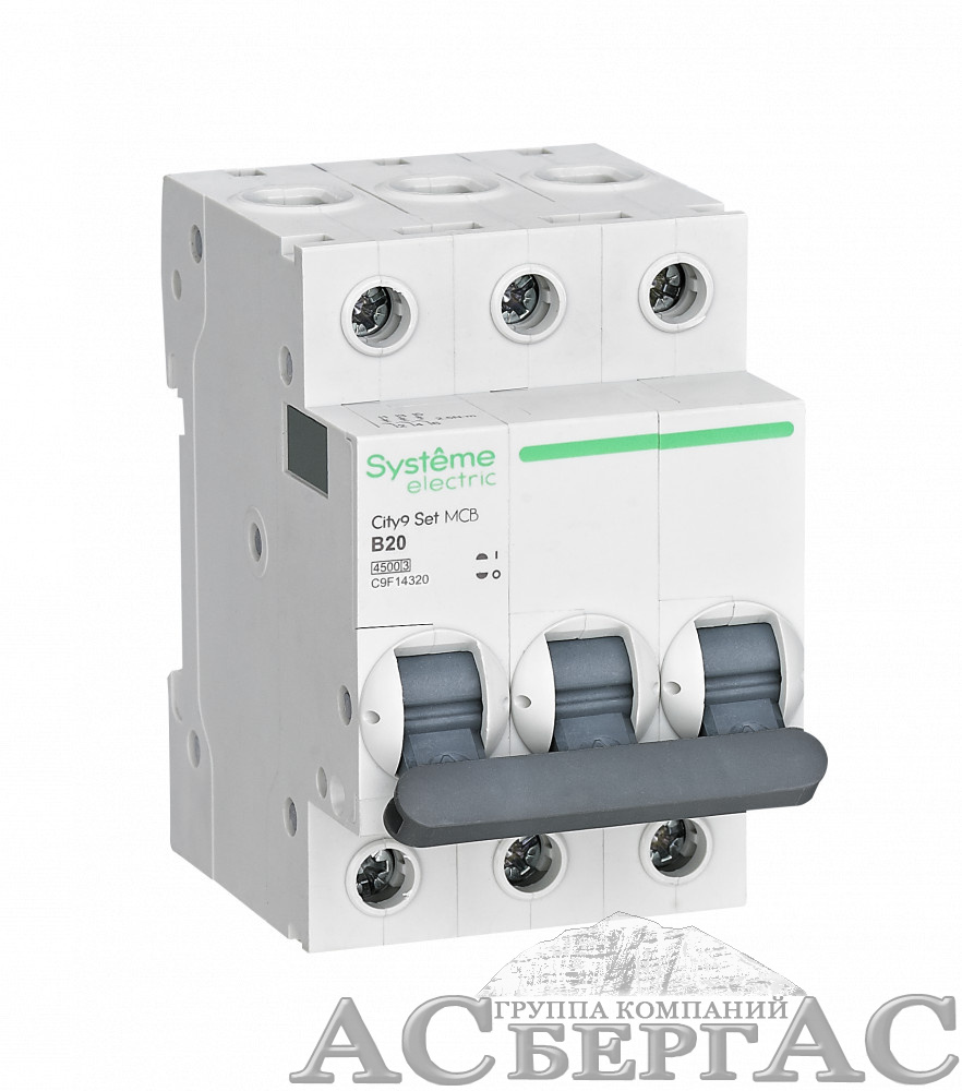 Автоматический выключатель 3-полюсный, 20А, 4.5kA (хар-ка B) City9 Systeme Electric
