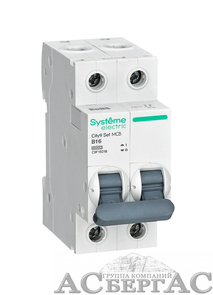 Автоматический выключатель 2-полюсный, 16А, 6kA (хар-ка B) City9 Systeme Electric