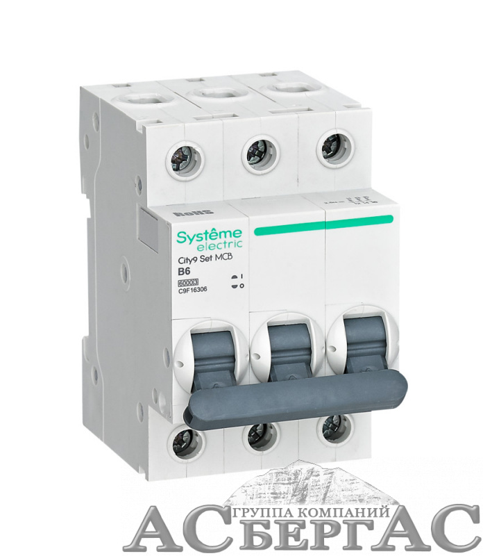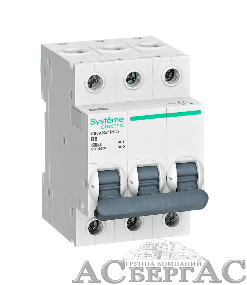 Автоматический выключатель 3-полюсный, 6А, 6kA (хар-ка B) City9 Systeme Electric