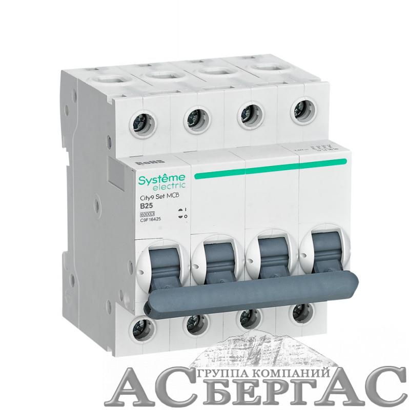 Автоматический выключатель 4-полюсный, 25А, 6kA (хар-ка B) City9 Systeme Electric