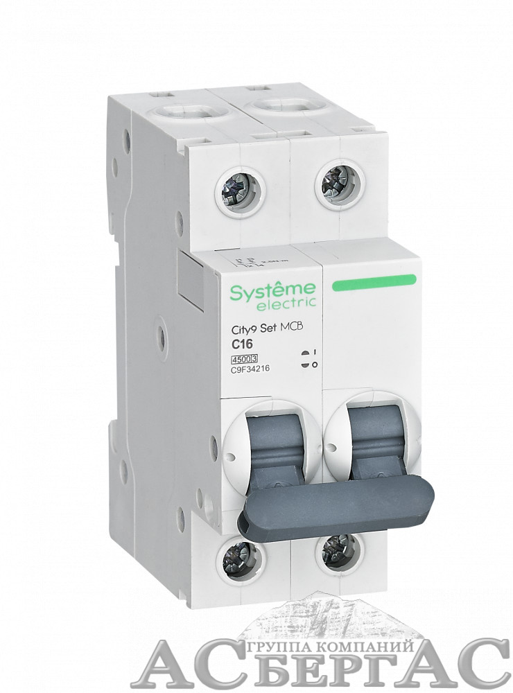 Автоматический выключатель 2-полюсный, 16А, 4.5kA (хар-ка C) City9 Systeme Electric