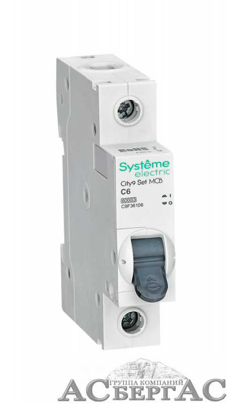 Автоматический выключатель 1-полюсный, 6А, 6kA (хар-ка С) City9 Systeme Electric