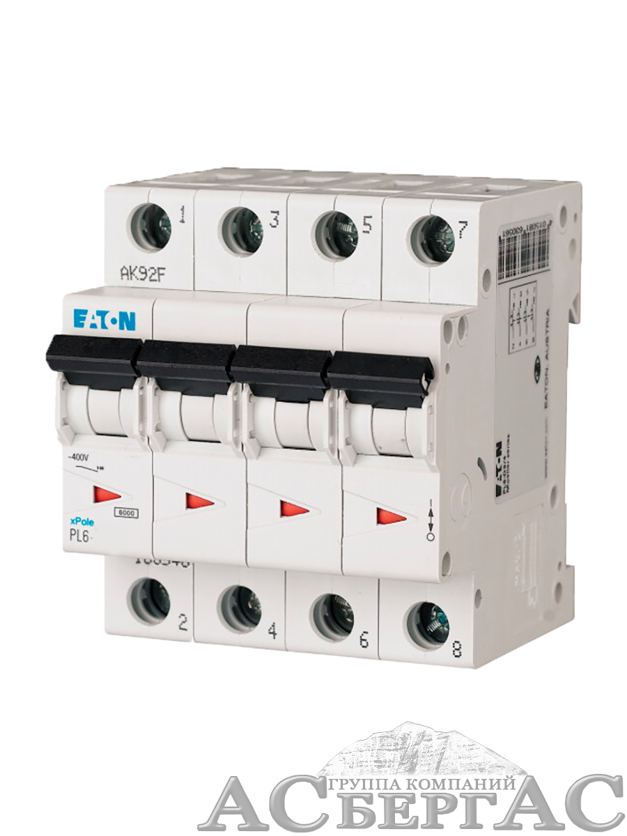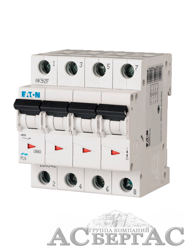 166525 PL6-C3/4 Автоматический выключатель 4-полюсный, 3А, 6kA (хар-ка C) Eaton