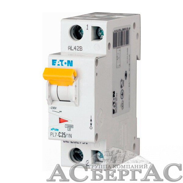 262751 PL7-C25/1N Автоматический выключатель 1P+N, 25А, 10kA (хар-ка C) Eaton