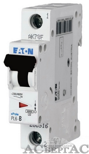 286522 PL6-B20/1 Автоматический выключатель 1-полюсный, 20А, 6kA (хар-ка B) Eaton