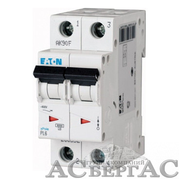 286569 PL6-C25/2 Автоматический выключатель 2-полюсный, 25А, 6kA (хар-ка C) Eaton