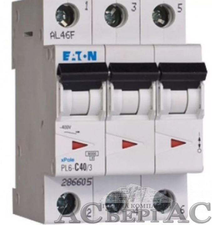 286605 PL6-C40/3 Автоматический выключатель 3-полюсный, 40А, 6kA (хар-ка C) Eaton