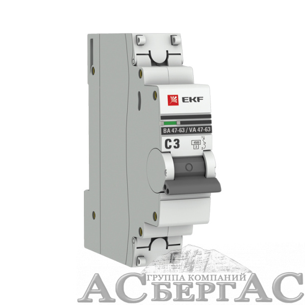 ВА 47-63 Автоматический выключатель 1-полюсный, 3А, 4,5kA (хар-ка C) EKF PROxima