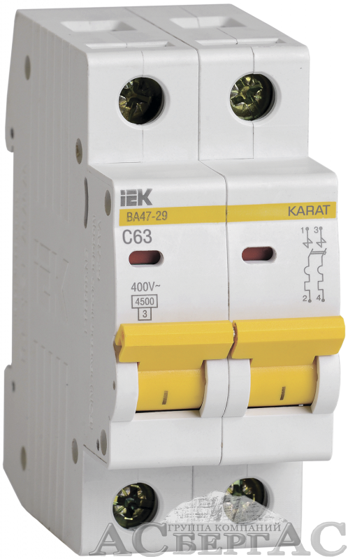 ВА47-29 Автоматический выключатель 2-полюсный, 63А, 4,5kA (хар-ка C) ИЭК