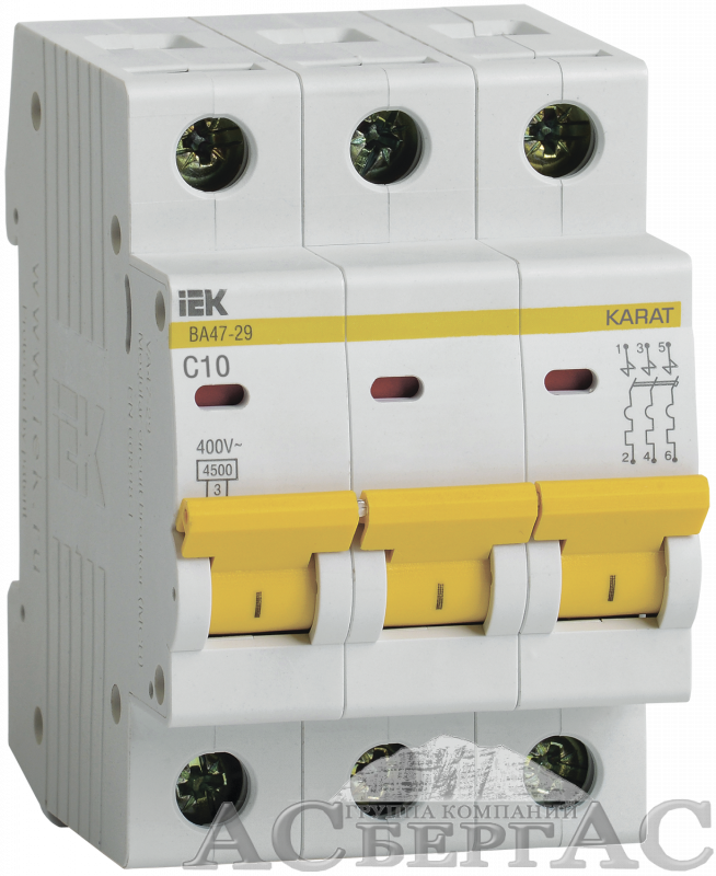 ВА47-29 Автоматический выключатель 3-полюсный, 10А, 4,5kA (хар-ка C) ИЭК