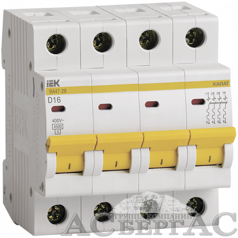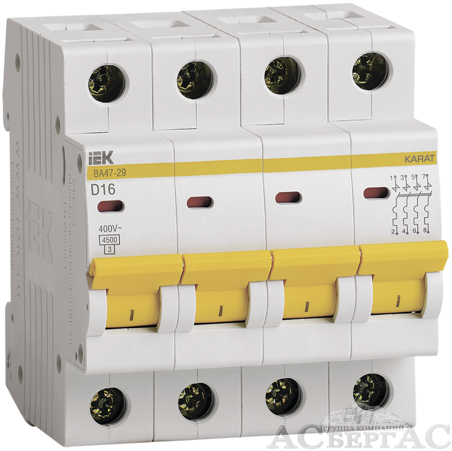 ВА47-29 Автоматический выключатель 4-полюсный, 16А 4,5kA (хар-ка D) ИЭК