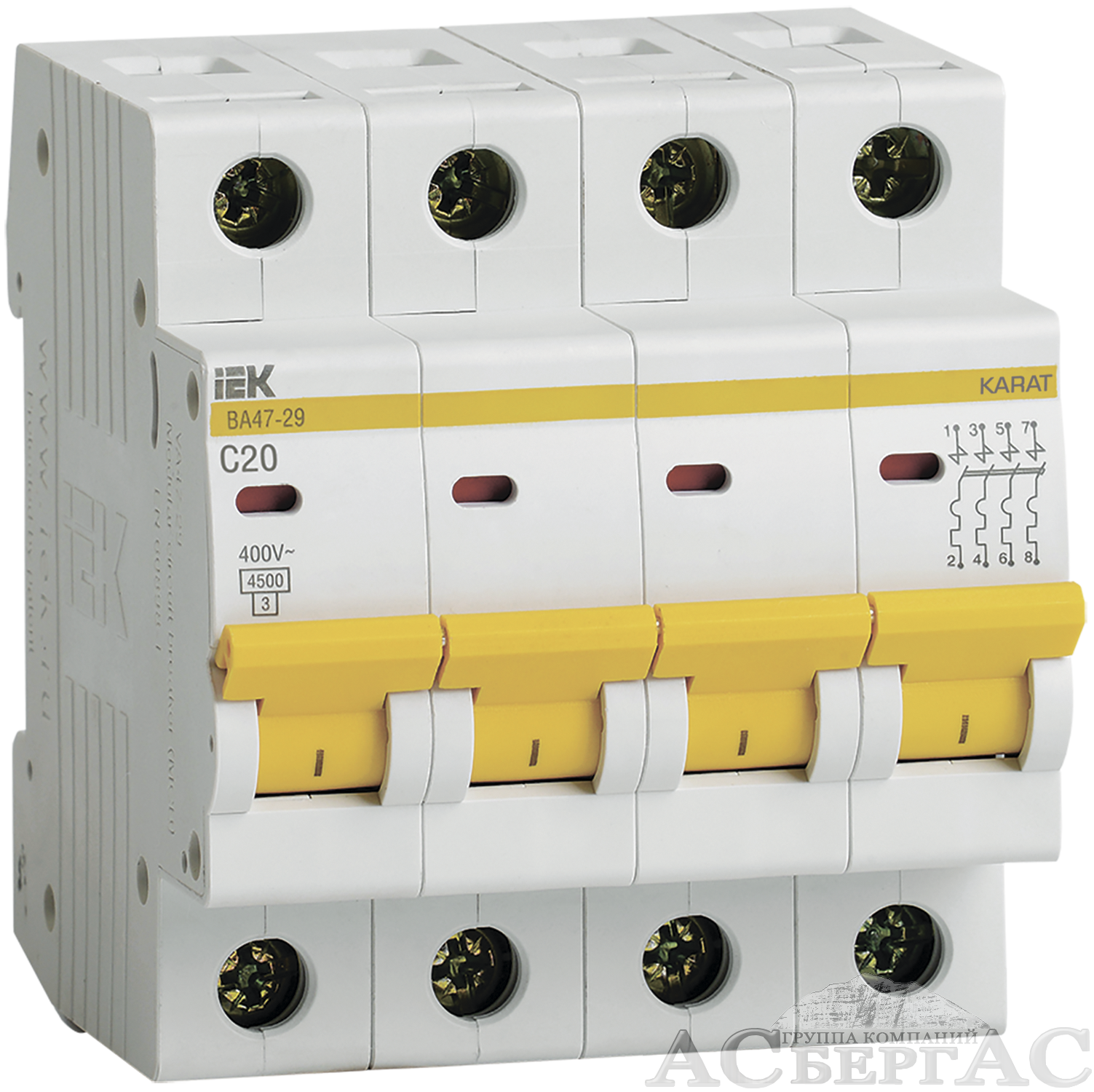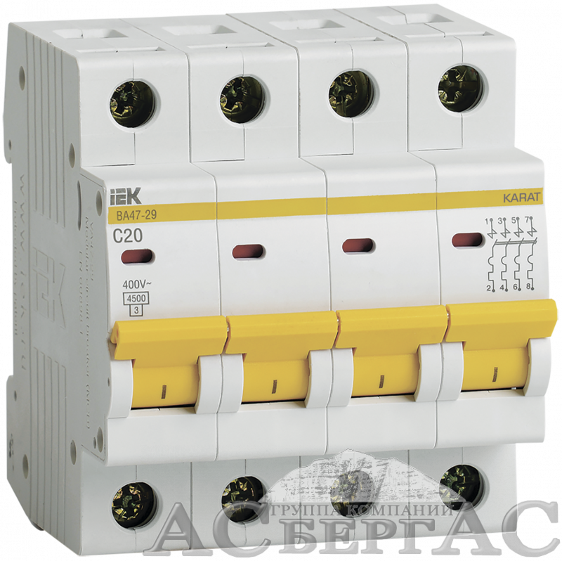 ВА47-29 Автоматический выключатель 4-полюсный, 20А 4,5kA (хар-ка C) ИЭК