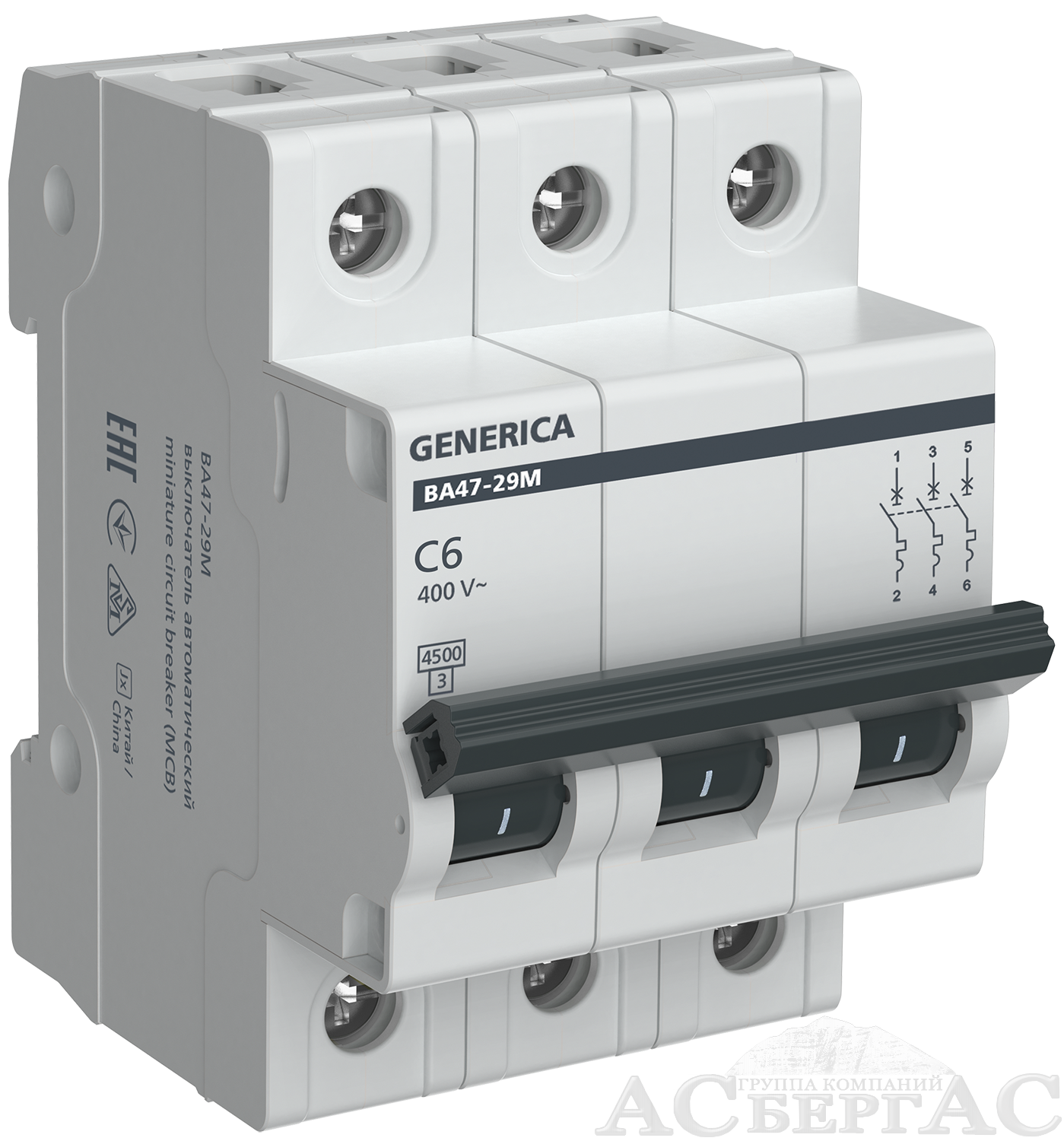 ВА47-29M Автоматический выключатель 3-полюсный, 6А, 4,5kA (хар-ка C) GENERICA ИЭК