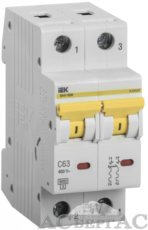 ВА47-60М Автоматический выключатель 2-полюсный, 63А, 6kA (хар-ка C) ИЭК