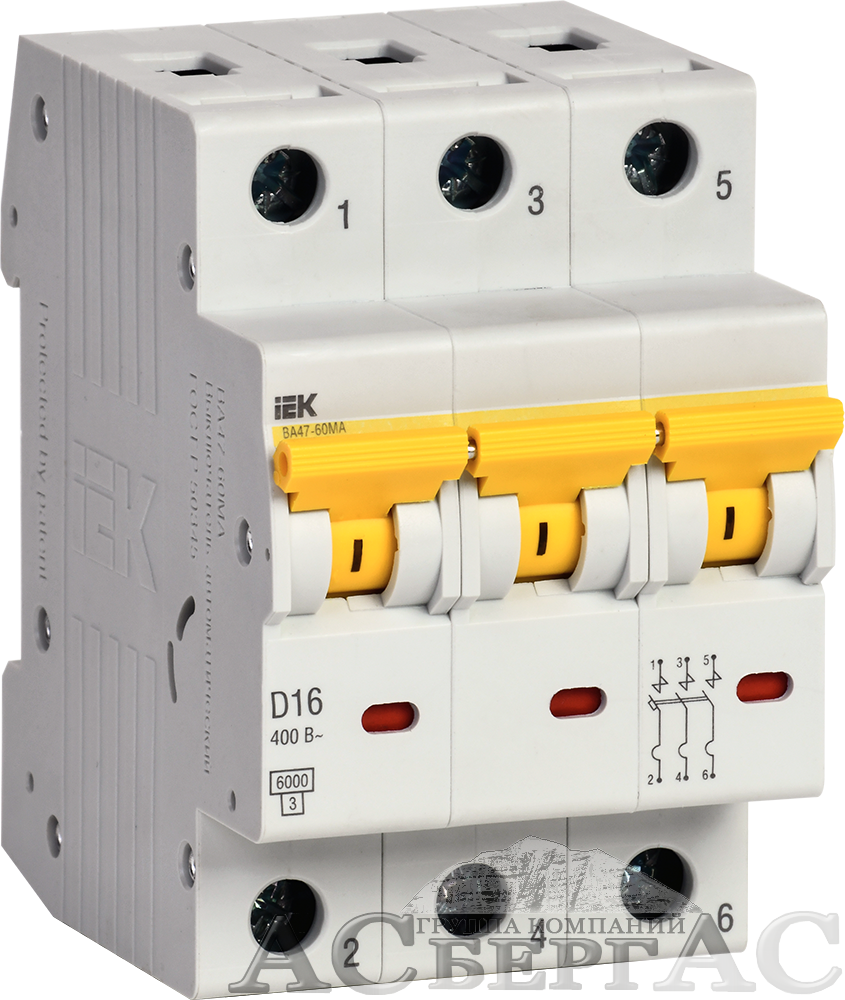 ВА47-60МА Автоматический выключатель 3-полюсный, 16А, 6kA (хар-ка D) ИЭК
