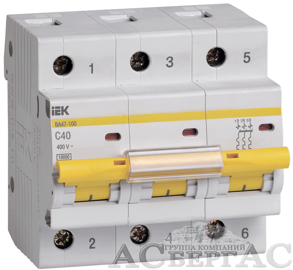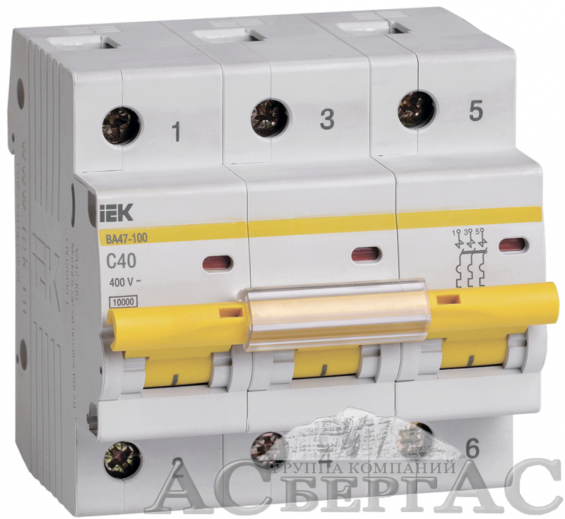 ВА47-100 Автоматический выключатель 3-полюсный, 40А, 10kA (хар-ка C) ИЭК