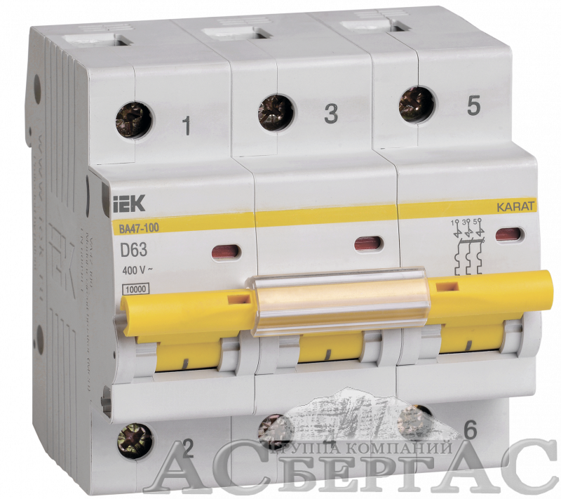 ВА47-100 Автоматический выключатель 3-полюсный, 63А, 10kA (хар-ка D) ИЭК