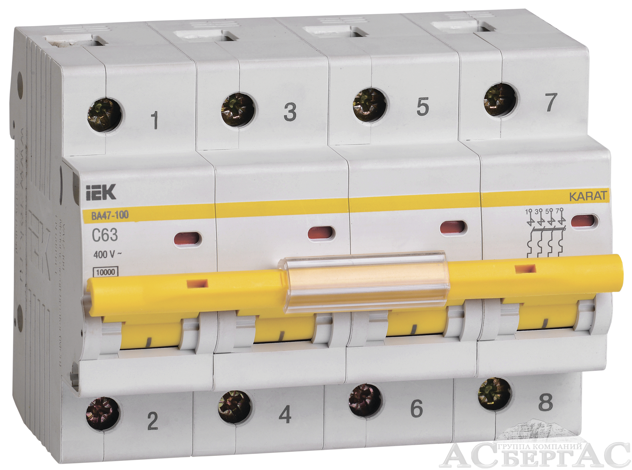 ВА47-100 Автоматический выключатель 4-полюсный, 63А 10kA (хар-ка C) ИЭК