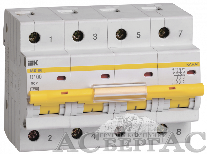 ВА47-100 Автоматический выключатель 4-полюсный, 100А, 10kA (хар-ка D) ИЭК