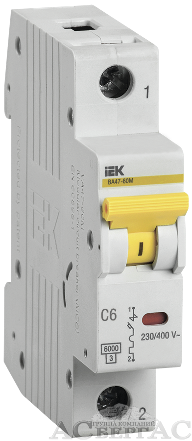 ВА47-60М Автоматический выключатель 1-полюсный, 6А, 6kA (хар-ка C) ИЭК