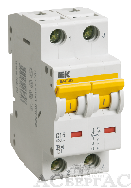 ВА47-60 Автоматический выключатель 2-полюсный, 16А, 4,5kA (хар-ка B) ИЭК