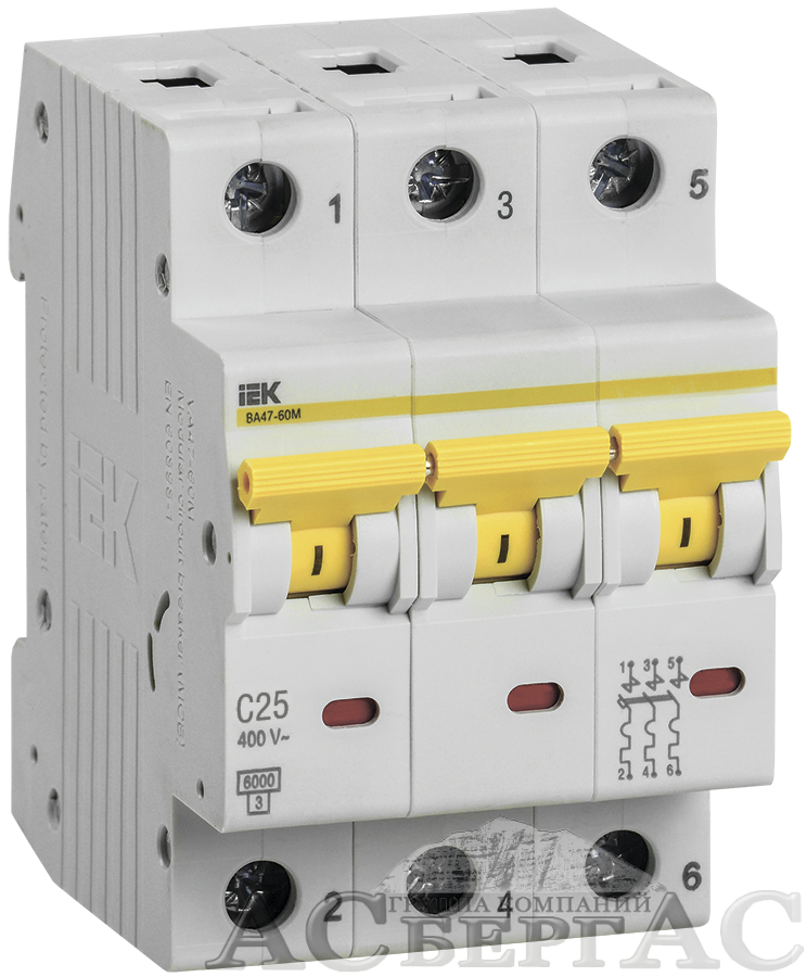 ВА47-60М Автоматический выключатель 3-полюсный, 25А, 6kA (хар-ка C) ИЭК