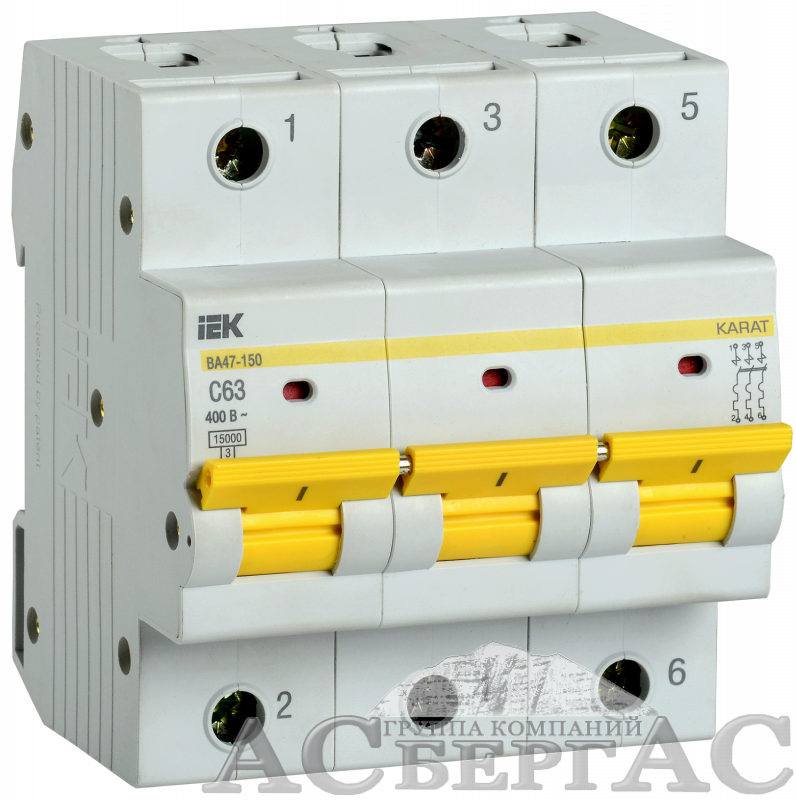 ВА47-150 Автоматический выключатель 3-полюсный, 63А 15kA (хар-ка C) ИЭК