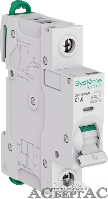 Автоматический выключатель 1-полюсный, 1.6A, 6kA (хар-ка C) Systeme9 Systeme Electric
