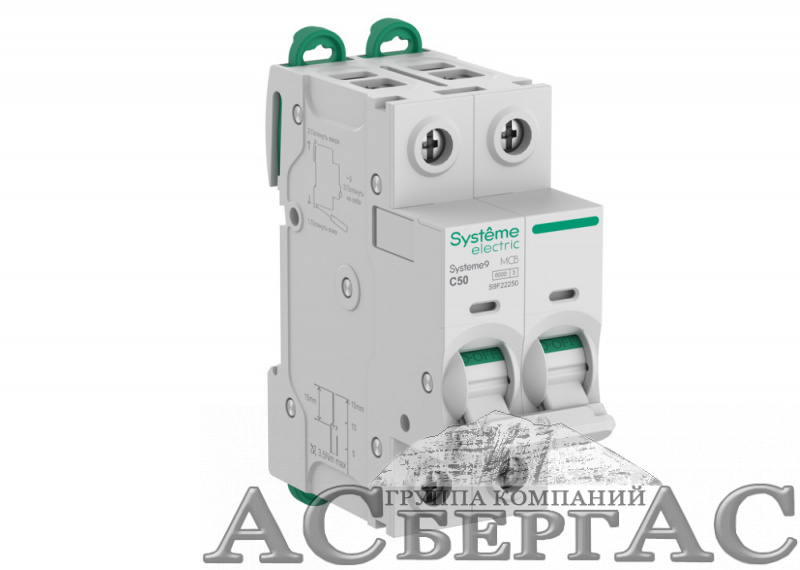 Автоматический выключатель 2-полюсный, 50A, 6kA (хар-ка C) Systeme9 Systeme Electric