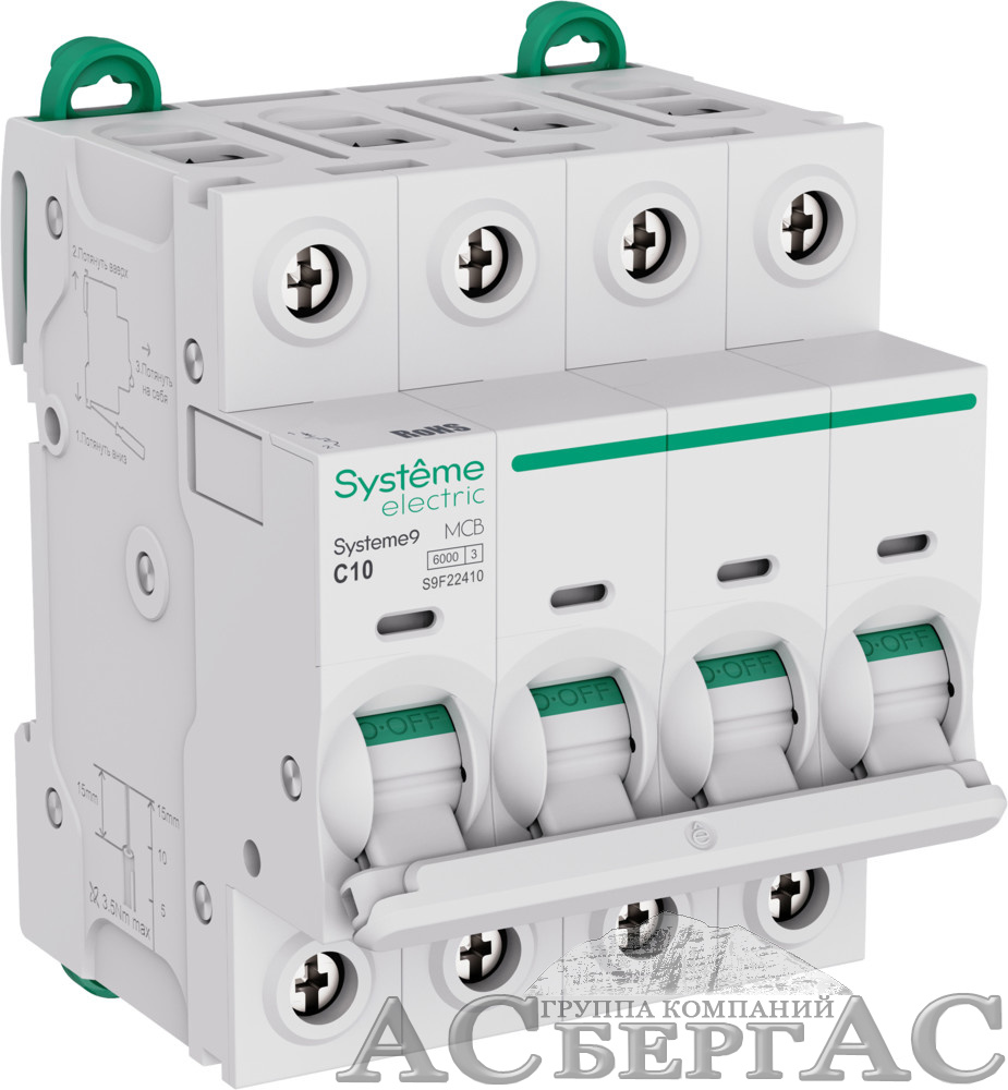 Технические характеристики и фотографии к Автоматический выключатель 4-полюсный, 10A, 6kA (хар-ка C) Systeme9 Systeme Electric S9F22410 Вы можете запросить у менеджеров отдела интернет-продаж, используя для этого удобный Вам способ связи.