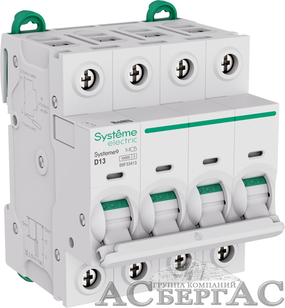 Технические характеристики и фотографии к Автоматический выключатель 4-полюсный, 13A, 10kA (хар-ка D) Systeme9 Systeme Electric S9F33413 Вы можете запросить у менеджеров отдела интернет-продаж, используя для этого удобный Вам способ связи.