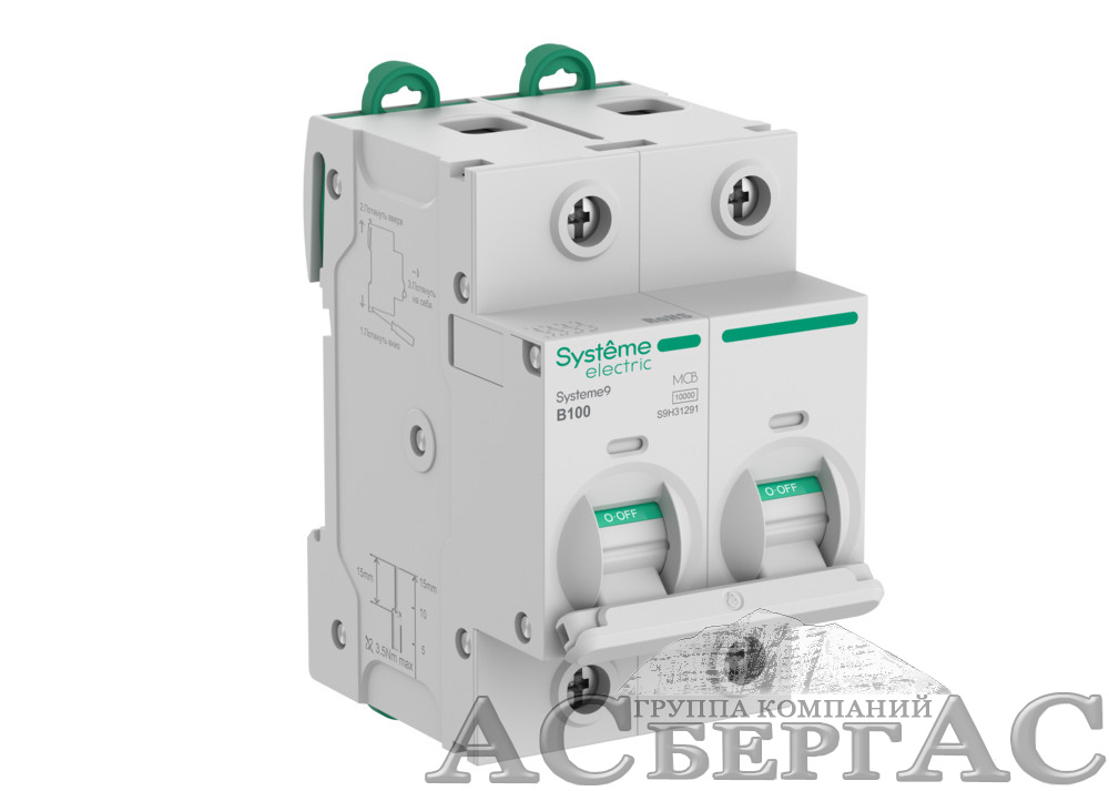 Автоматический выключатель (27мм) 2-полюсный, 100A, 10kA (хар-ка B) Systeme9 Systeme Electric