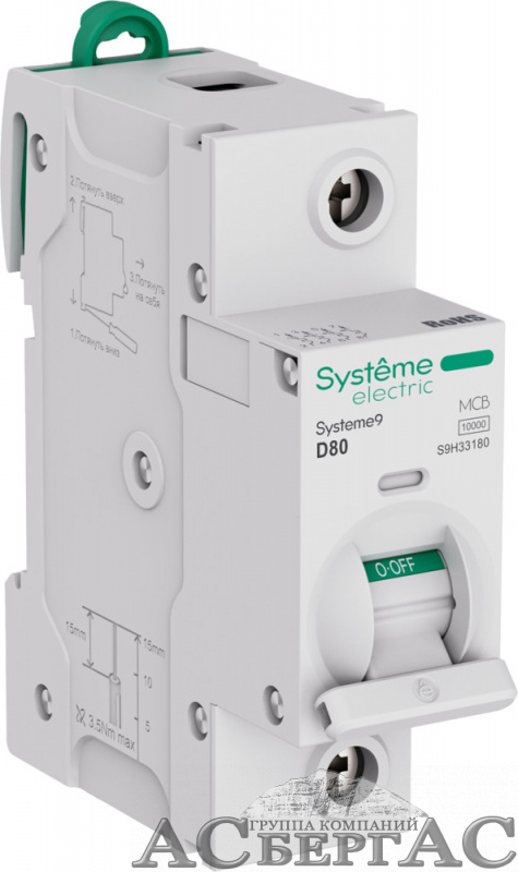 Автоматический выключатель (27мм) 1-полюсный, 80A, 10kA (хар-ка D) Systeme9 Systeme Electric