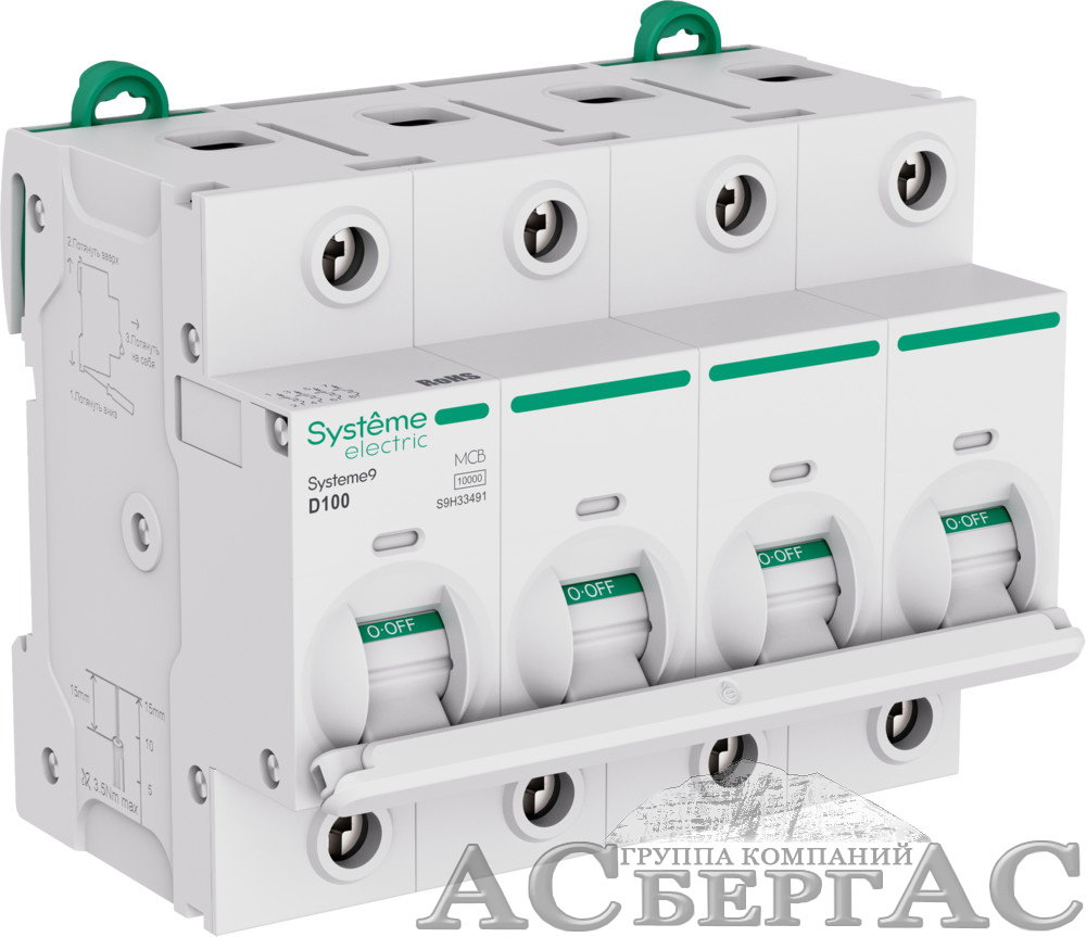 Технические характеристики и фотографии к Автоматический выключатель (27мм) 4-полюсный, 100A, 10kA (хар-ка D) Systeme9 Systeme Electric S9H33491 Вы можете запросить у менеджеров отдела интернет-продаж, используя для этого удобный Вам способ связи.
