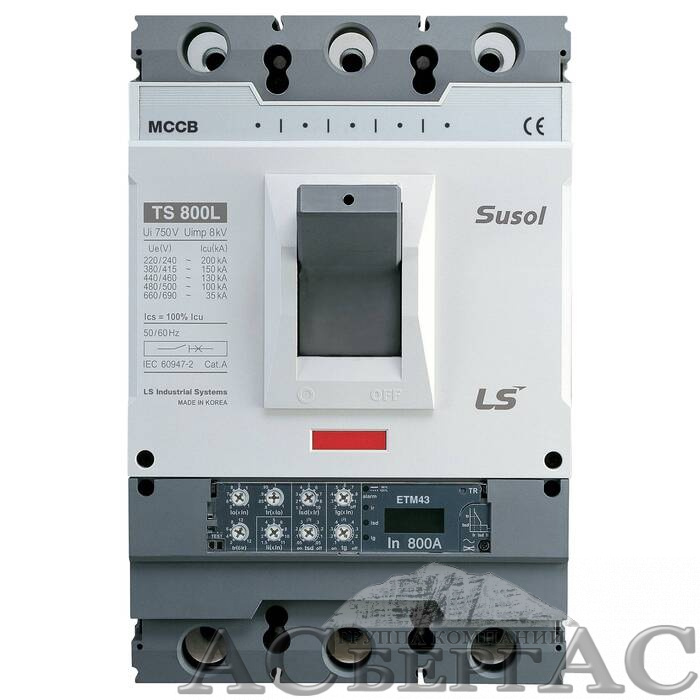 TS800N ETM43 800A 3P3T Автоматический выключатель 3-полюсный 800A (65kA) с расцепителем ETM43 LS Industrial Systems