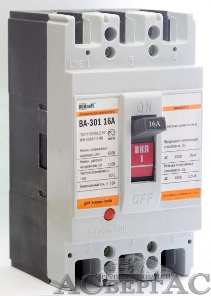 ВА301-3P-0016A Автоматический 3х-полюсный выключатель 16А 25кА DEKraft