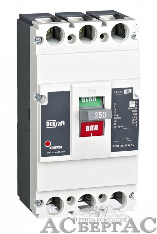 ВА-304 L Термо-магнитный 3х-полюсный автомат 3P 200А 35кА 7In DEKraft