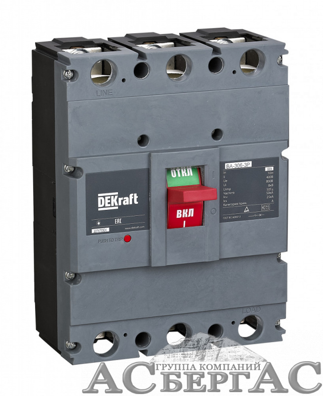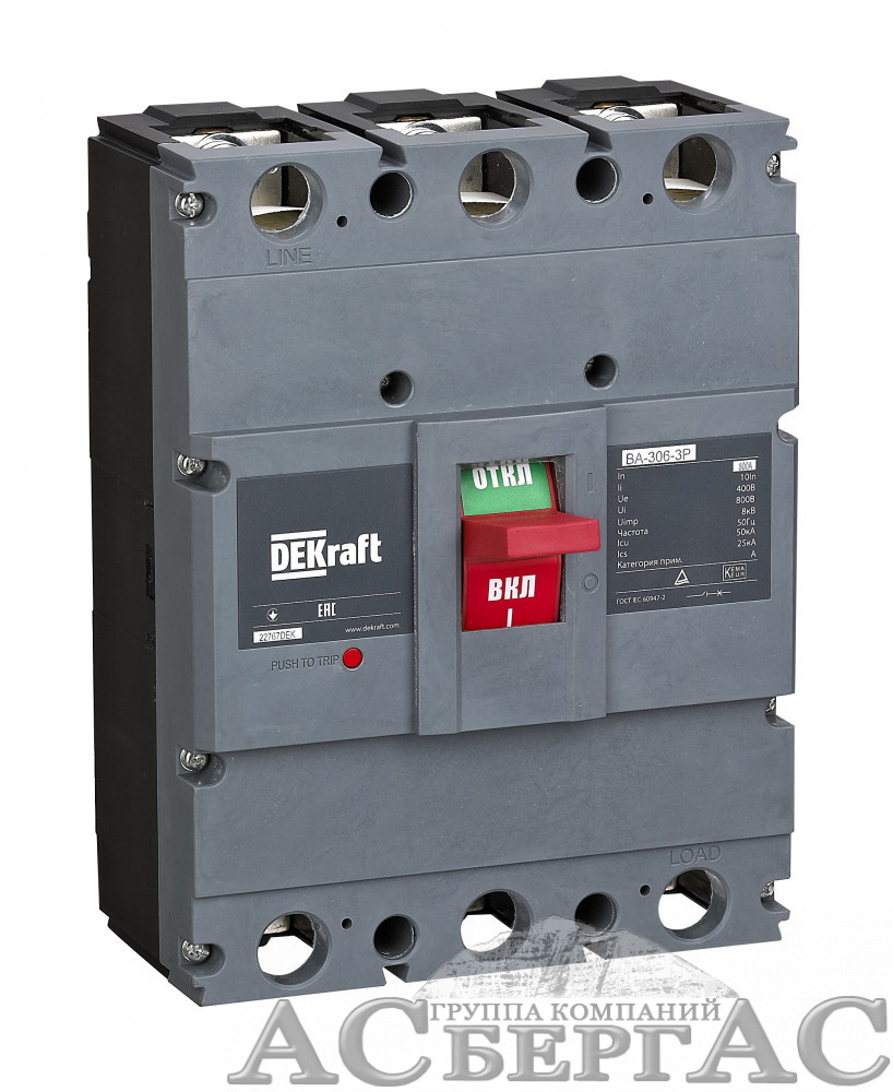 Силовой авт. выкл. 3P 630А 50кА ВА-306 DEKraft