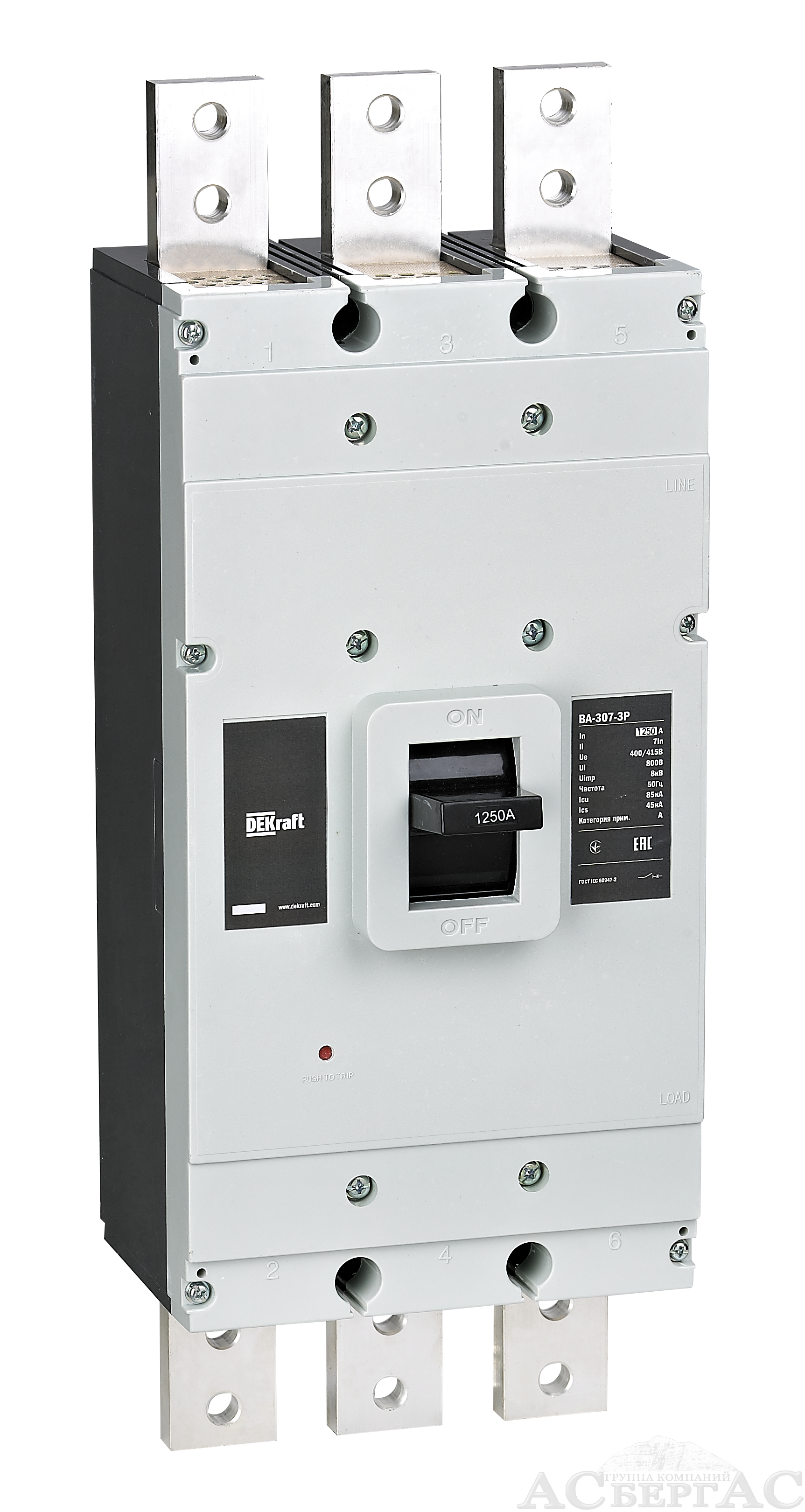 ВА-307-3P-0800A Силовой автоматический 3-х полюсный выключатель 800А 85кА DEKraft