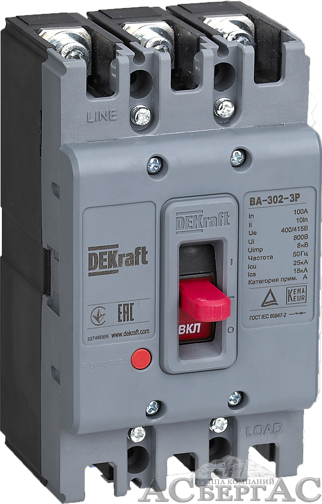 Технические характеристики и фотографии к ВА-302M-3P-0050A Автоматический 3-х полюсный выключатель в литом корпусе 50А 25кА DEKraft 22806DEK Вы можете запросить у менеджеров отдела интернет-продаж, используя для этого удобный Вам способ связи.