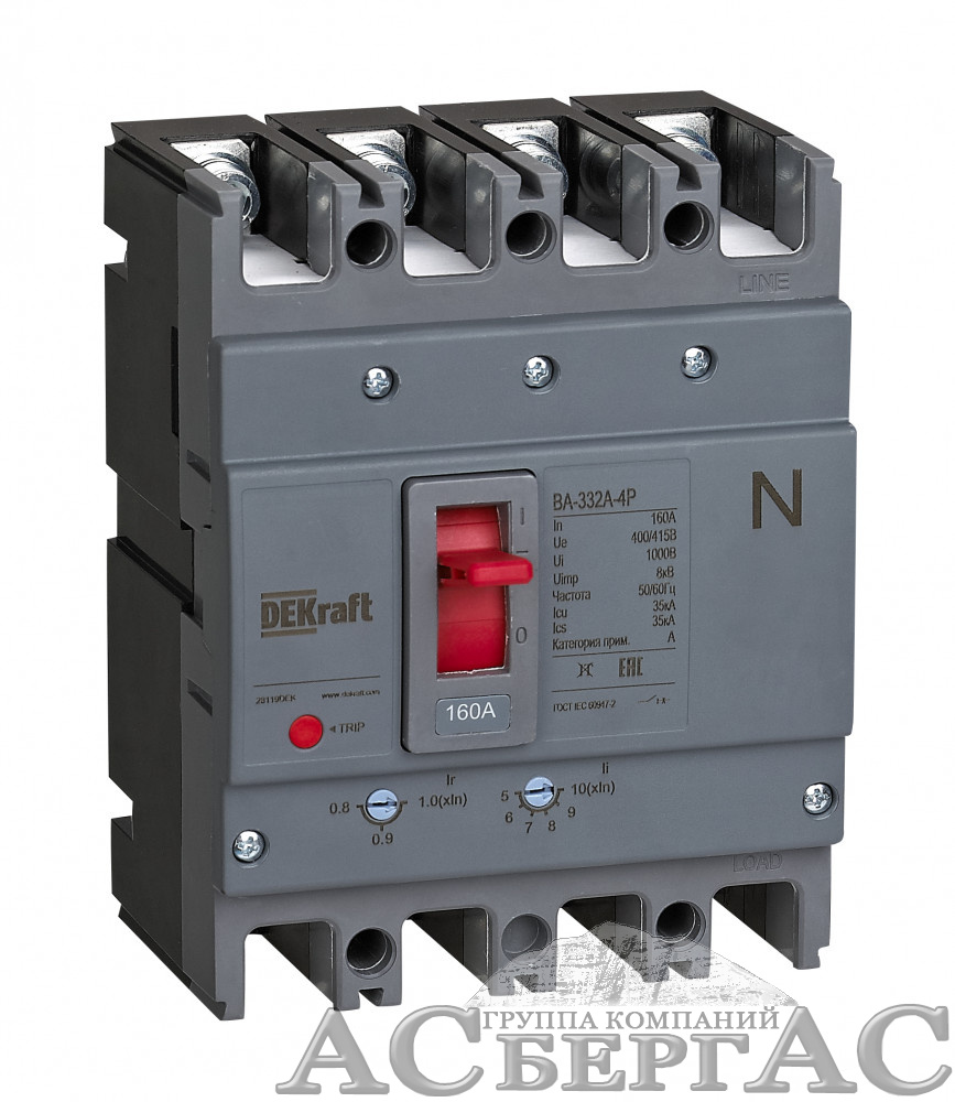 ВА-332А Автоматический выключатель 4-полюсный, 25A 35kA DEKraft